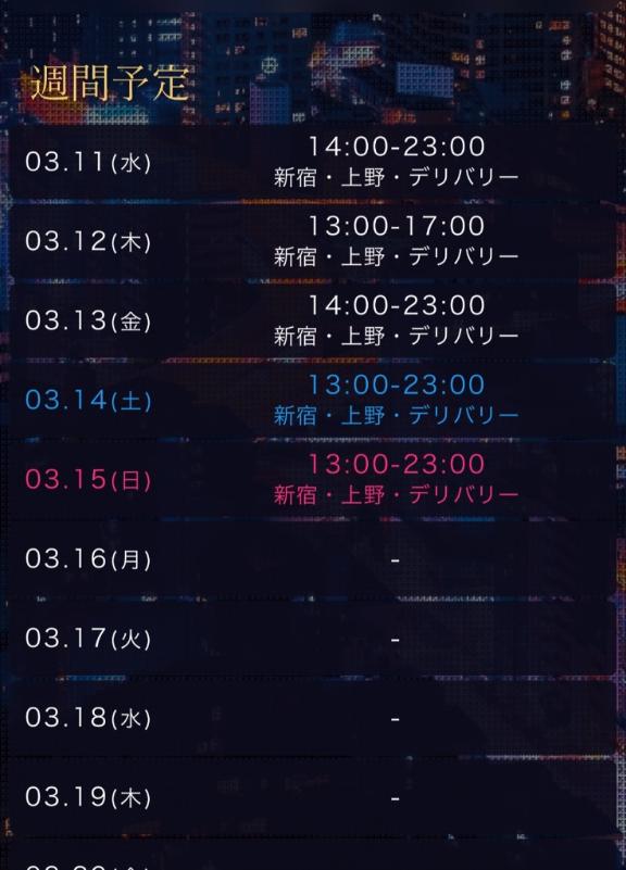 | 3月13日(金) | 14:00 ~ 23:00 |